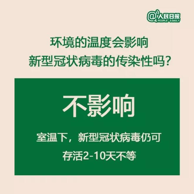 해답: 영향을 주지 않습니다. 실온하에 신종 코로나바이러서는 여전히 2일내지 10 가량 생존할 수 있습니다.