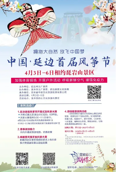 료해에 따르면 이번 축제는 4월 3일부터 6일까지 4일간 이어지게 되는데 행사기간 개막식, 조선족민속 공연, 연을 직접 제작하고 날리기, 봄철 관광상품 추천소개, 틱톡 대회, 풍경구 입장권 세트 단체 구매 이벤트 등 푸짐한 행사들을 펼치게 된다.