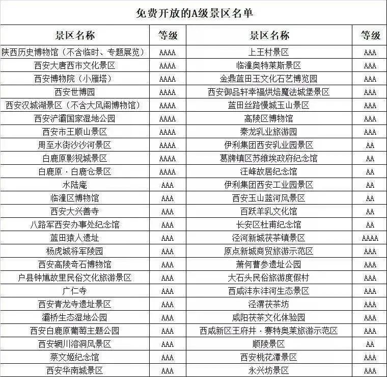 서안: 대당부용원, 서안성벽, 대명궁국가유적공원 등 풍경구를 포함해 53개 A급 풍경구의 입장권을 면제한다.