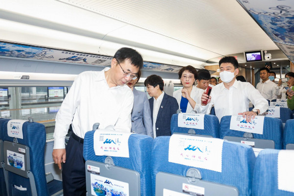 ‘장백산, 내 마음이 향하는 곳’ 고속철 전문렬차에 들어서면 차체 외부의 채색스티커(彩贴), 헤드(头片), 데스크톱(桌贴), 포스터(海报), 브랜드 천막, 방송, LED 등에서 모두 장백산 관광브랜드 원소를 볼 수 있는바 탑승객들에게 장백산의 아름다움을 가까이에서 느낄 수 있도록 했다. 동시에 148조 광주국 복흥호 렬차도 영상 선전의 형식으로 장백산을 전면적으로 전시하는바 음성과 화면이 결합되여 브랜드매력을 깊이 전파한다.