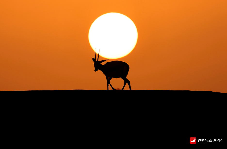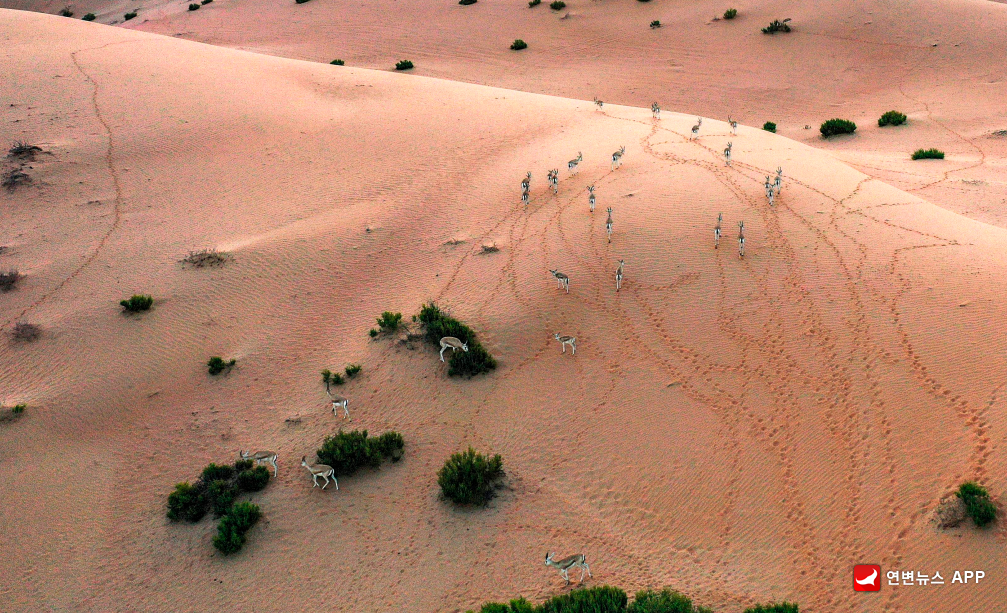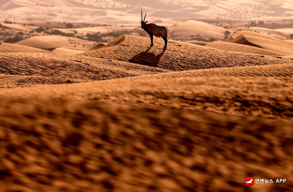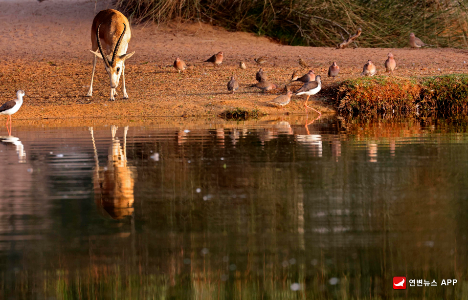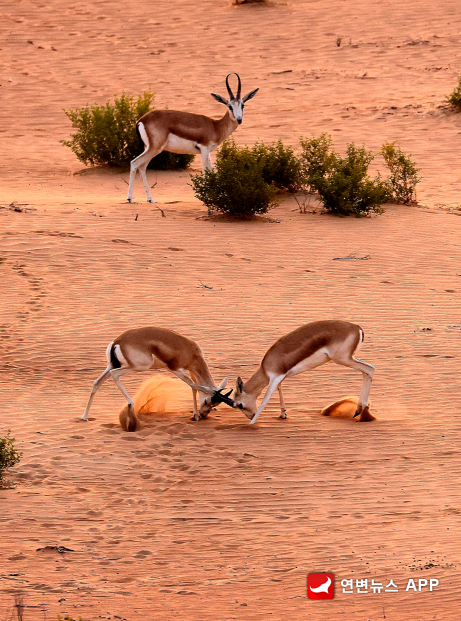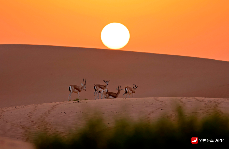 1월 26일 아랍추장국 련방 알아인 교외에 위치한 사막의 오아시스에서 촬영한 가젤라 아라비카(Gazella arabica). 사진제공: 신화사