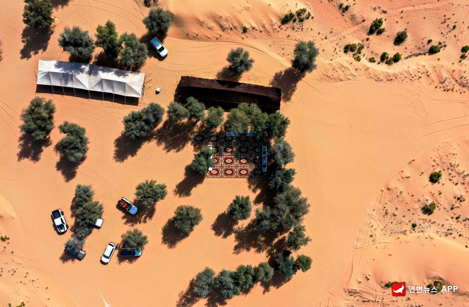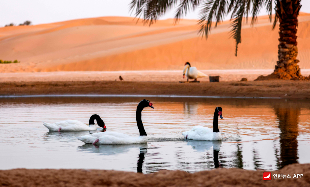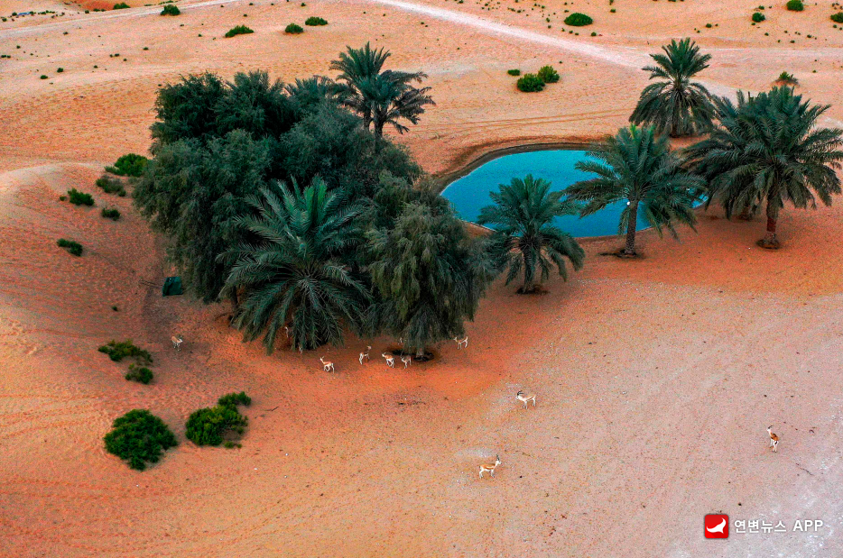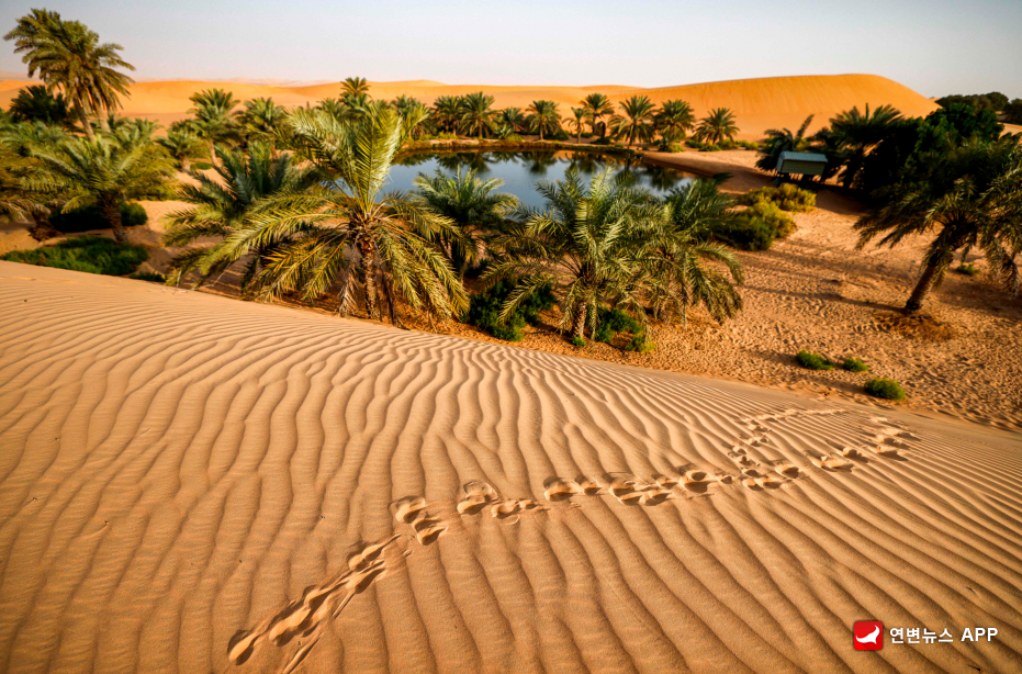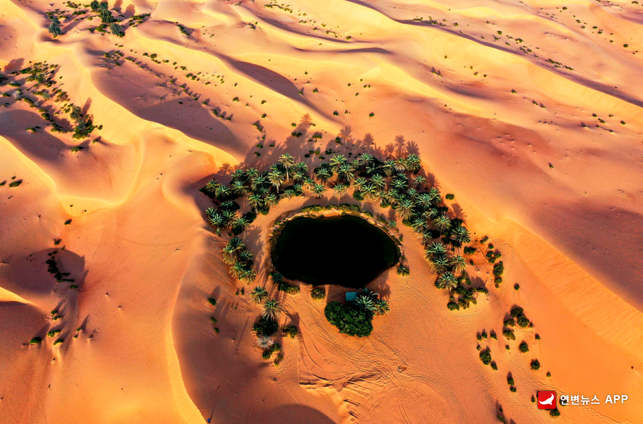 1월 26일 촬영한 아랍추장국 련방 알아인 교외에 위치한 한 사막의 오아시스. 사진제공: 신화사