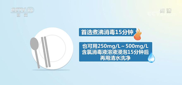 가정내 기타 성원과 생활용품을 공용하지 말고 식기를 사용한 후 깨끗한 물로 소독해야 한다. 식기는 끓는 물에 15분 동안 소독하거나 혹은 250 mg/L~500mg/L의 염소함유 액체로 15분간 담가두었다가 깨끗한 물에 씻어야 한다.