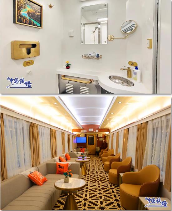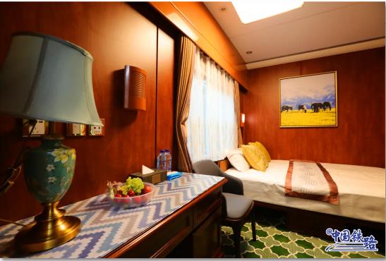 2인용 침대방, 단독화장실, KTV, 스탠드바, 휴계실… 이것은 특급호텔이 아니라 온갖 시설이 완비되여있고 정교하게 장식된 고품격 관광전용렬차인 신동방급행렬차이다.