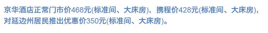 원 가격 328원인 방을 연변주 주민의 경우 본인 신분증으로 218원에 투숙 가능.