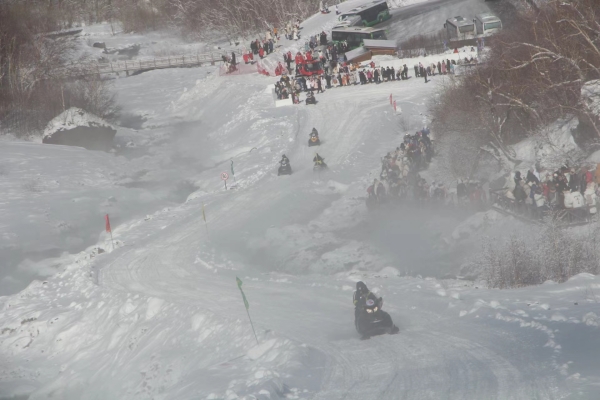 폭포 주차장에서 스노모터 한대가 굉음을 내며 관광객을 태우고 높은 산과 강 사이를 누비며 바람을 가르면서 폭포명소로 향했고 장백산의 바람과 눈의 매력을 음미했다.