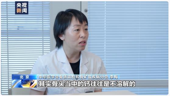 중국의학협회 골다공증 및 골광염질환 지부 리매: 식사를 통해 칼시움을 보충할 때 일부 잘못된 인식이 있다. 례를 들어 많은 환자들은 곰탐을 마시면 칼시움을 보충한다고 생각할 수 있지만 사실 뼈의 칼시움은 종종 용해되지 않기에 곰탕에는 지방이 더 많이 포함되여있고 그 물질이 푸린(嘌呤)이다. 녀성은 페경 후 골밀도를 검사하는 것이 가장 좋은데 의사는 환자의 골절위험을 평가한 후 다양한 강도의 항골다공증치료제를 투여하여 골밀도를 효과적으로 높이고 골절위험을 줄인다.