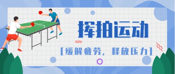 4. 일반적인 스윙(挥拍)운동에는 바드민톤, 탁구, 테니스 등이 포함되는데 학생들 사이에서 보급률이 비교적 높다. 스윙운동은 상체, 몸통 및 하체의 조화로운 힘을 필요로 하며 이는 목, 어깨 경직의 불편함과 허리와 등 근육의 피로를 완화시키는 데 도움이 된다. 공을 칠 때 날아오는 공을 직시하다보면 안구의 움직임이 빨라지고 눈의 피로가 풀린다.