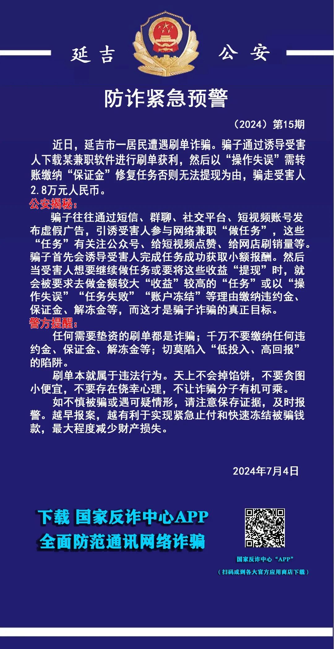 최근 연길 시민이 허위구매 사기를 당했다. 사기군은 피해자가 모 아르바이트 소프트웨어를 다운받아 허위구매를 진행하도록 유도하고 '조작 실수'로 '보증금'을 납부해야 임무를 복구할 수 있지 그렇지 않으면 현금을 인출할 수 없다면서 피해자에게서 2.8만원을 사기쳤다.