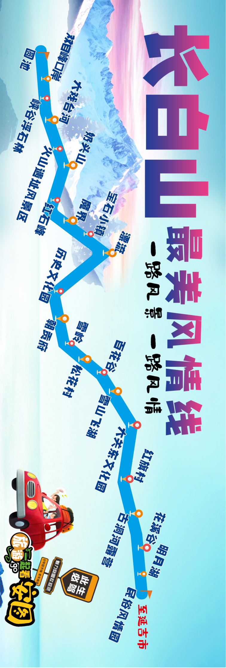 장백산 가장 아름다운 풍경선은 한갈래 간편한 관광로선일 뿐만 아니라 인문경관을 결합하고 자연경관과 민속체험을 일체화하여 매력으로 충만된 관광로선을 형성했다. 장려한 산천호수를 따라 다채로운 장백산 경관을 경과해 마침내 민속풍정으로 충만된 원림에 도착한다.