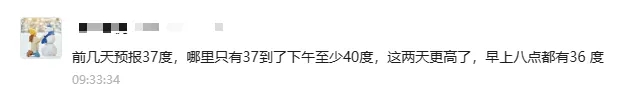 요즘 고온날씨가 이어지고 있는데 호북의 네티즌들은 “이렇게 더운데 왜 일기예보는 40℃를 예보하지 않을가?”라는 질문을 했다.