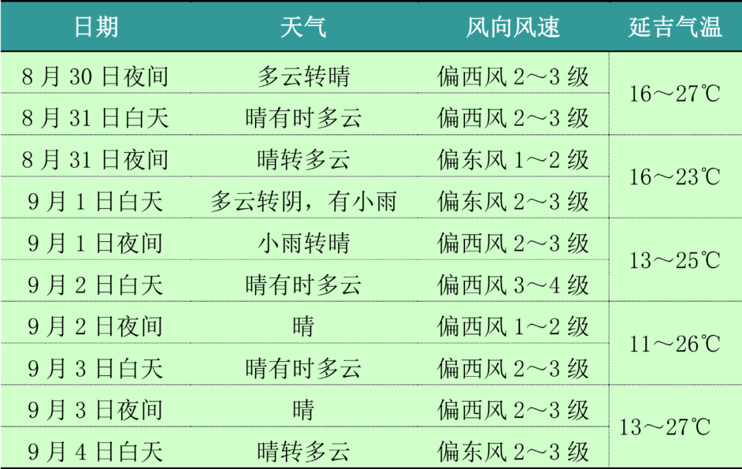 1. 9.3기간 전반적인 기상 조건은 대중의 출행에 유리하다. 도시향진 주민들은 관광 및 야외 활동을 적극적으로 전개할 수 있으며 풍경구는 안전 관리를 강화할 것이 요청된다.