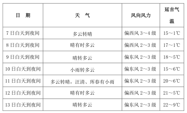 4. 기온 기복이 비교적 크기에 군중은 출행시 옷을 적당하게 챙겨입어 감기와 호흡도질병을 예방해야 한다.
