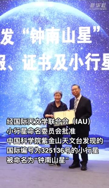 2021년 하량하리기금 선정위원회의 추천과 중국과학원 자금산천문대 신청을 거쳐 국제소행성명명위원회는 국제번호325136번 소행성을 ‘종남산별’로 명명하는 것을 비준했다. 자금산천문대 연구원 조해빈은 2008년 처음 발견된 ‘종남산별’은 태양까지의 평균 거리가 3.73억km로 태양을 한바퀴 도는 데 4.05년이 걸린다고 소개했다. 종남산은 의료과학의 돌발공공위생사건에서의 수차례 응용은 과학연구가 불확실성에 직면했을 때 인간의 건강을 보호하는 강력한 무기임을 증명했다면서 ‘종남산별’의 명명은 그의 개인적인 영광일 뿐만 아니라 팀협동사업에 대한 표창이자 긍정이라고 말했다.