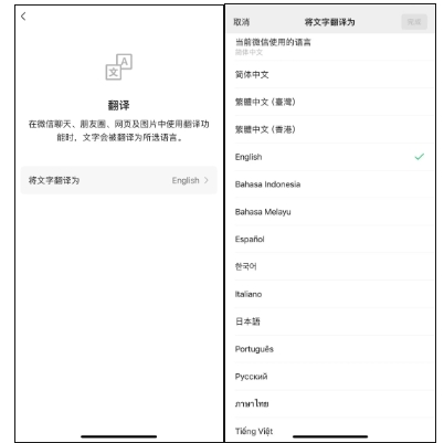 위챗이 온라인 ‘애플릿 번역’기능을 출시했다, 애플릿의 오른쪽 상단에 새로운 번역 버튼이 추가되였으며 클릭 한번으로 현재 페지의 텍스트를 번역할 수 있어 사용자가 빠르게 리해하고 기능을 사용할 수 있다. 번역을 취소하거나 언어를 바꾸려면 ‘…’을 클릭하면 된다.