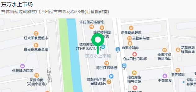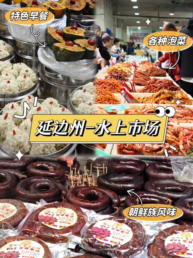 수상시장은 연길시 연집하 강반에 위치하고 있으며 연길에서 가장 큰 아침시장으로 당지 민속풍정을 가장 잘 체험할 수 있다.