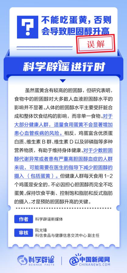 비록 닭알 노른자에 비교적 많은 콜레스테롤이 함유되여있지만 연구에 따르면 음식중 콜레스테롤은 대부분 사람들의 혈중콜레스테롤수치에 큰 영향을 미치지 않는다고 한다. 인체의 콜레스테롤수준은 주로 단일식품이 아닌 간합성과 전반적인 식이구조의 영향을 받는다. 대부분의 건강한 사람들에게 있어 적절한 량의 닭알 노른자를 섭취하는 것은 심혈관질환의 위험을 크게 증가시키지 않는다. 반면 닭알은 량질 단백질, B족비타민, 비타민D, 레시틴 등 다양한 영양소가 풍부해 건강을 유지하는 데 도움이 된다. 콜레스테롤대사가 비정상적이거나 심각한 고콜레스테롤혈증을 앓고 있는 소수의 사람들의 경우 의사의 지도하에 콜레스테롤섭취(노른자 포함)를 줄여야 할 수 있다. 그러나 건강한 사람들은 하루에 1~2개의 닭알을 섭취해도 안전하며 콜레스테롤 걱정으로 노른자를 전혀 먹지 않을 필요가 없다. 균형잡힌 식단을 유지하고 포화지방과 트랜스지방 섭취를 조절하는 것이 콜레스테롤 상승을 예방하는 관건이다.