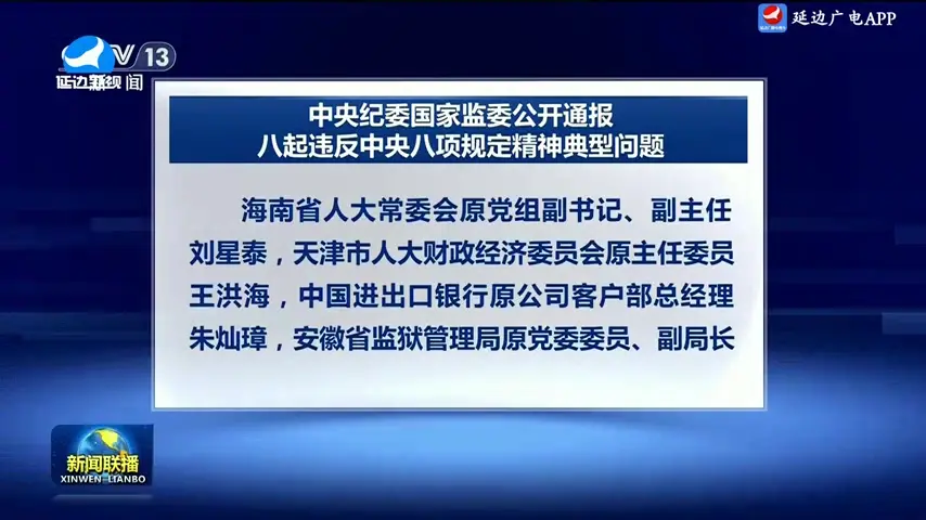 중앙규률검사위원회 국가감찰위원회 중앙 8항규정 정신 위반 전형문제 8건 공개 통보