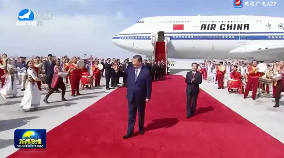 습근평 중앙대표단 인솔해 우룸치에 도착하여 신강위글자치구 창립 70주년 경축활동 참석