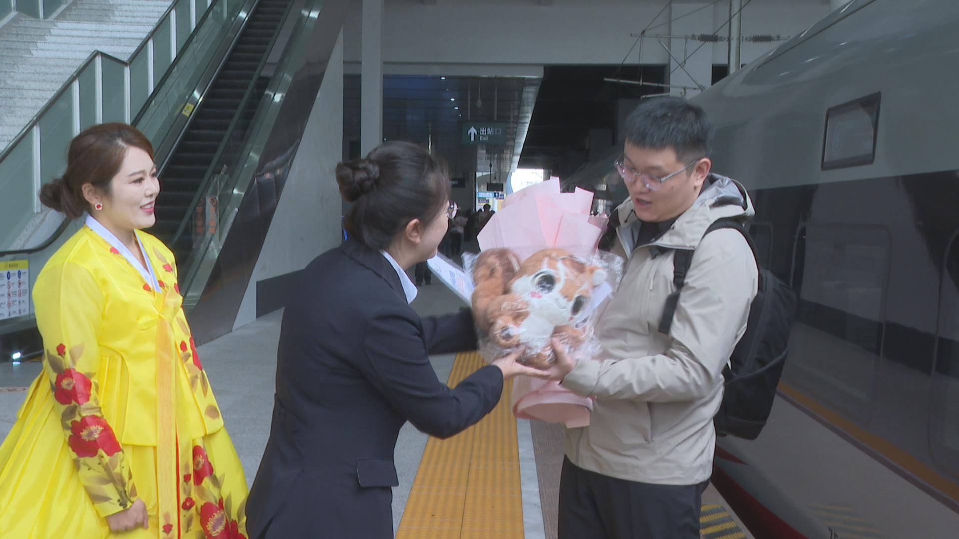 [영상뉴스] 심양—장백산 고속철도 개통 첫날, 우리 주 문화관광 추천소개활동 펼쳐져