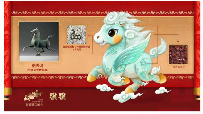 12월 18일, 중앙텔레비죤방송총국은 <2026년 음력설문예야회> 마스코트 이미지를 공개했다. ‘기기(骐骐)’, ‘기기(骥骥)’, ‘치치(驰驰)’, ‘빙빙(骋骋)’ 4마리 준마는 활발하고 사랑스러우며 의기양양한바 행사주제인 ‘천리마의 거침없는 질주는 막을 수 없다(骐骥驰骋 势不可挡)’와 일맥상통하며 서로 조화를 이룬다. 이 마스코트는 중국의 부동한 시기 말의 고전적인 자태에서 령감을 받아 디자인되였다. 여기에 류운(流云)무늬, 산운(山云)무늬 등 천년의 전통문양을 ‘입혀’ 면면히 이어지는 력사의 아름다움과 만물이 소생하는 새 시대의 기운을 생동감 있게 담아냈다. 또한 ‘마도성공(말이 닿자마자 성공함)’과 ‘전정사금(앞길이 비단처럼 펼쳐짐)’이라는 축복의 의미를 담고 있다.