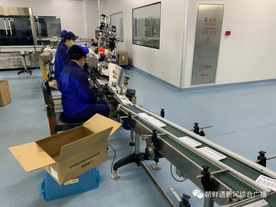 길림오동약업집단 연길주식유한회사 생산부 총경리 우해도:"회사는 가장 빠른 시간내에 응급기제를 가동해 원료,포장재료를 긴급 조달받았습니다. 2월 8일에 회사는 이미 "리바비린" 주사약의 생산을 가동했으며 9일에 포장작업을 시작했는 데 매일 약 25만대를 생산하고 있습니다. 이 상품은 대략 보름 후에 시장에 투입하게 됩니다. "