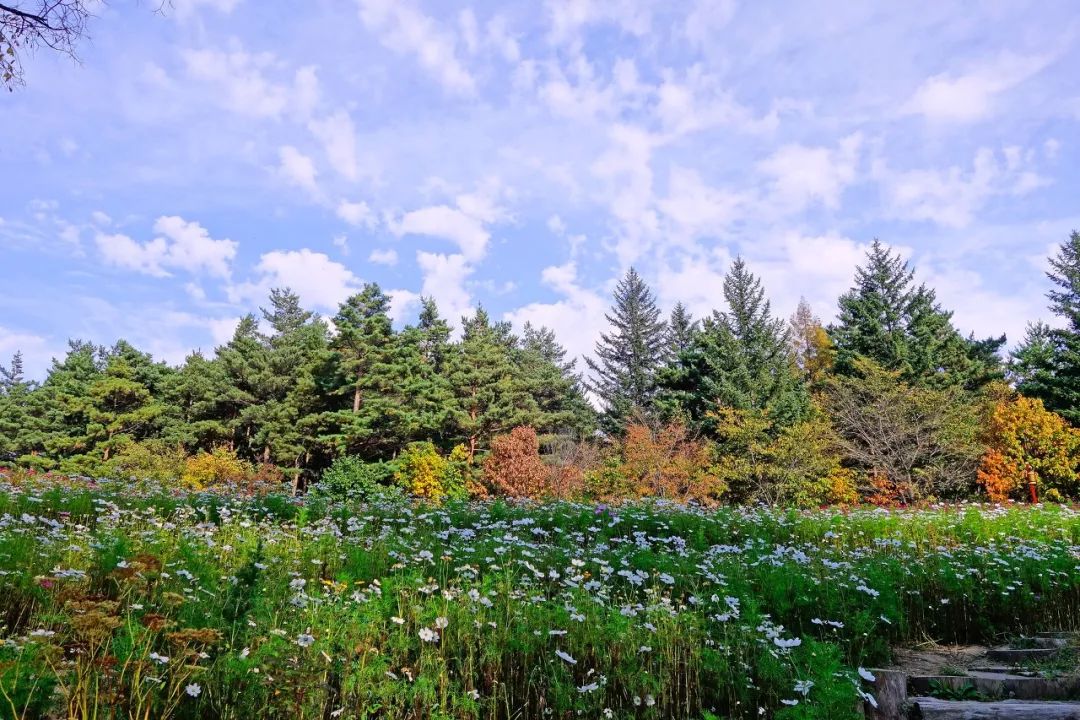 여름은 짧지만 나무는 울창하고 꽃은 아름다움을 다투고 푸른 풀이 방석처럼 펼쳐져 있다.