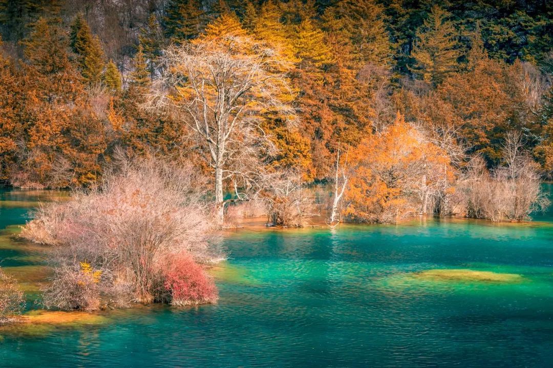 10월은 오화해가 가장 예쁠 때로 이 계절에는 호수가 맑아 바닥이 보이고, 해안가에 일곱 가지 색깔을 띠는 나뭇잎이 수중 그림자와 뒤엉켜 알른거려서 눈이 어지럽다.