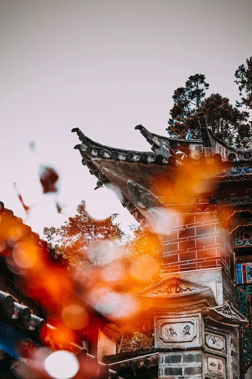 가을의 한줄기 열기속에 흰 벽과 검은 기와가 자연의 배경, 얼음과 불과 충돌할때의 무원은 가장 층차감이 있다.