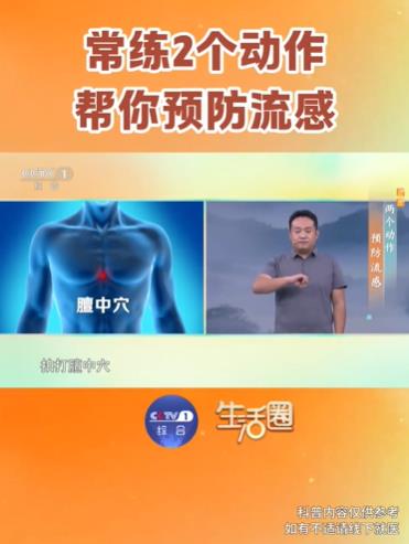 독감류행시즌, 당황해할 필요가 없다! 중국중의과학원 광안문병원 건강회복의학과 부주임의사 위경쌍은 독감을 예방하기 위해 이런 2가지 동작을 알아둘 것을 건의했다.
