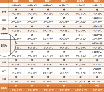 길림성기상국에 따르면 향후 한주간(1월 4일-10일) 전 성은 맑거나 때때로 구름이 많을 것으로 예상되는 가운데 1월 6-7일, 중동부에 소낙눈 또는 적은 눈,1월 8-10일, 동남부에 중등 정도의 눈, 일부 지역에 큰눈, 중부에 적은 눈이 예상된다.