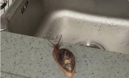 5월 6일, 광동성 혜주에서 2층에 사는 한 녀성은 소셜플랫폼에 영상을 올려 비가 오는 날 창문을 닫는 것을 잊었다가 집을 돌아와보니 주방에 커다란 달팽이 두마리가 기여들어왔으며 그중 한마리는 그녀의 물컵에까지 들어갔다고 밝...