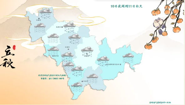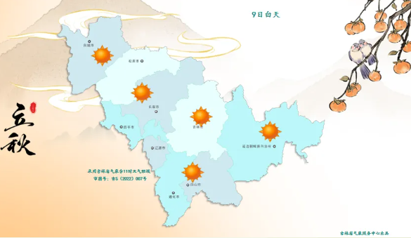 길림성은 구름이 많이 끼겠고 장춘, 사평, 료원, 길림, 통화 북부에는 소나기 혹은 천둥 번개를 동반한 소나기가 내리겠으며 그중 장춘 동부, 길림 부분적 지역에는 중등 정도의 비에서 큰비가 내림과 아울러 단시간내 강한 강수, 천둥 폭우 강풍 혹은 우박 등 강대류날씨가 동반될 것으로 예상된다.