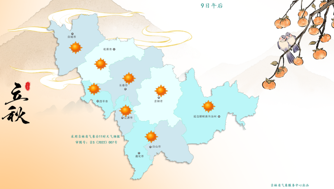 향후 24시간 길림성 대부분 지역 최저기온은 20~23℃, 길림성 대부분 지역 최고기온은 25~29℃에 달할 것으로 보인다.