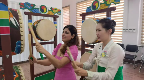 이어 일행은 조선족무형문화재와 민속풍정을 체험했다. 이들은 룡정시문화관을 찾아 무형문화재인 룡고춤을 체험했다. "룡고춤의 동작이 독특하고 스텝이 경쾌하여 매우 감화력이 있습니다." 인도에서 온 류학생은 룡고춤에 깊은 흥취를 보였다.