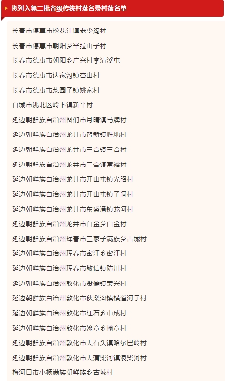 <길림성 제2차 전통촌락 조사추천사업을 전개할 데 관한 통지>(길건련발[2023]56호) 요구에 따르면 길림성주택도시농촌건설청 촌란건설처는 길림성문화관광청 문화재자원관리감독처, 길림성재정청 경제건설처, 길림성자연자원청 국토공간계획처, 길림성농업농촌청 농촌건설촉진처와 함께 전문가를 조직하여 추천 및 보고한 58개 촌락에 대해 심사했다.. 지역 추천, 전문가 평가, 재료 심사 및 현장 검토 및 검증 절차를 거쳐 장춘시 덕혜시 송화강진 로소구촌을 포함한 24개 촌락이 성급 전통촌락 목록에 포함될 예정임을 최종 결정했다.