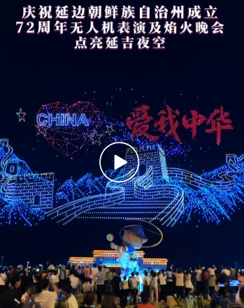 8,000대에 가까운 무인기는 '중화를 사랑하네', '화하의 거룡이 우주에 솟아오르네', '장백산 사시의 아름다움','진달래꽃바다', '조선족소녀의 학춤', '5개 연길리념', '연변조선족자치주 창립 72주년 경축' 등 조형과 문구를 밤하늘에 새겨 과학기술과 예술의 완벽한 조합을 보여주고 시민과 관광객들에게 전례 없는 시각적 향연을 선사했다.