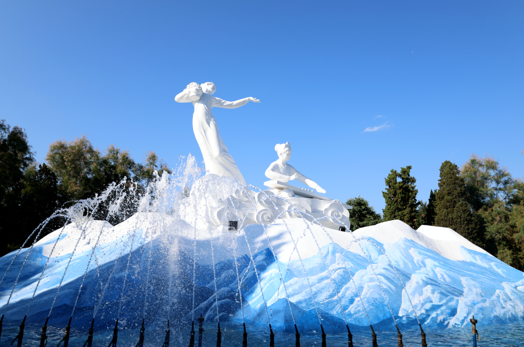 공원의 각종 부대시설을 보완하기 위해 7000평방메터의 나무잔도와 나무의자를 갱신하고 장백선녀수조, 화장실 방수, 남문광장의 파손된 타일 등을 보수했는데 9.3명절을 앞두고 개조공사를 전부 완수하여 사용에 투입했고 연변주 창립 70주년 경축 길상물-룡룡의 이전작업도 기본상 마무리했다. 특히 보수후의 '장백선녀' 조각상은 계단의 가장 높은 곳에 자리해 있는데 조선족 전통복장을 입고 흰구름 우에서 가야금을 타고 춤추는 모습은 오가는 사람들의 눈길을 사로잡았고 많은 사람들은 분분히 발걸음을 멈추고 기념사진을 남겼다.
