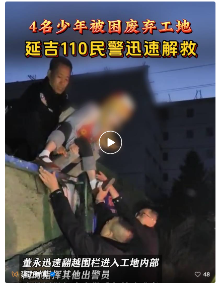10월 5일 해 질 무렵 미성년자 4명이 연길시 고신기술산업개발구(담배공장) 변두리의 한 페기된 공사장에 잘못 들어가 갇혀버리는 사고가 발생했다. 다급한 상황에서 아이들 중의 한 소년이 110에 전화해 도움을 청했다.