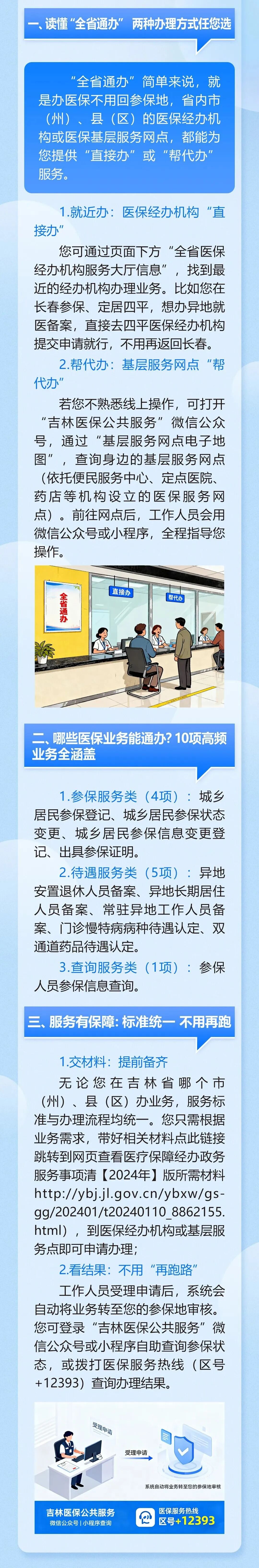 길림성사회의료보험관리국에서 발부한 최신소식에 따르면 길림성은 의료보험 10가지 업무 '전 성 통합 처리'를 실시하게 되였다. 보험가입자는 더 이상 가입지로 돌아갈 필요 없이 성내 가까운 의료보험처리기구 또는 기층봉사점에서 관련 업무를 처리할 수 있다. 구체적인 내용은 다음과 같다.