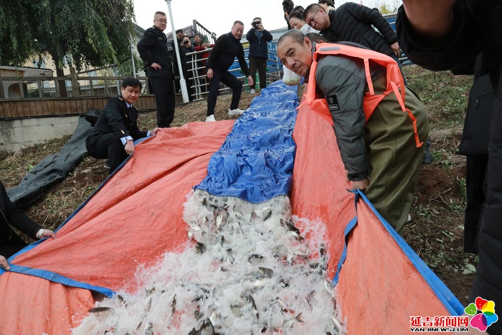 연길시는 10월 17일, 수생생물증식방류활동을 펼치고 련어(鲢鱼) 치어 12.79만마리를 부르하통하에 방류했다.