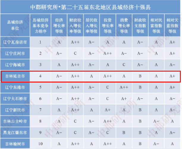 11월 11일, 전국 현역경제 전문연구기구인 중군연구소는 <제25회 현역경제 및 현역발전 연구보고>를 완수 및 발부하고 제25회 동북지역 현역경제 기본경쟁력 10강현 명단을 공개했다. 그중 연길시가 다시 한번 실력을 과시하며 명단에 올라 동북 10강현 자리를 25년 련속 굳건히 지켰으며 계속해서 길림성 1위를 차지했다.
