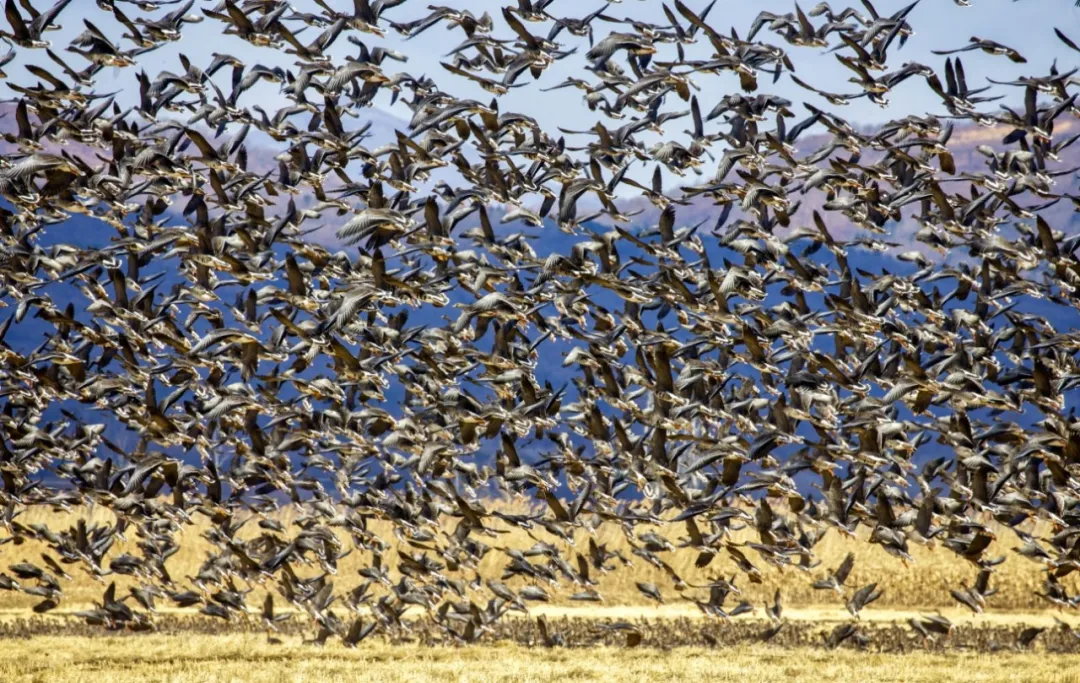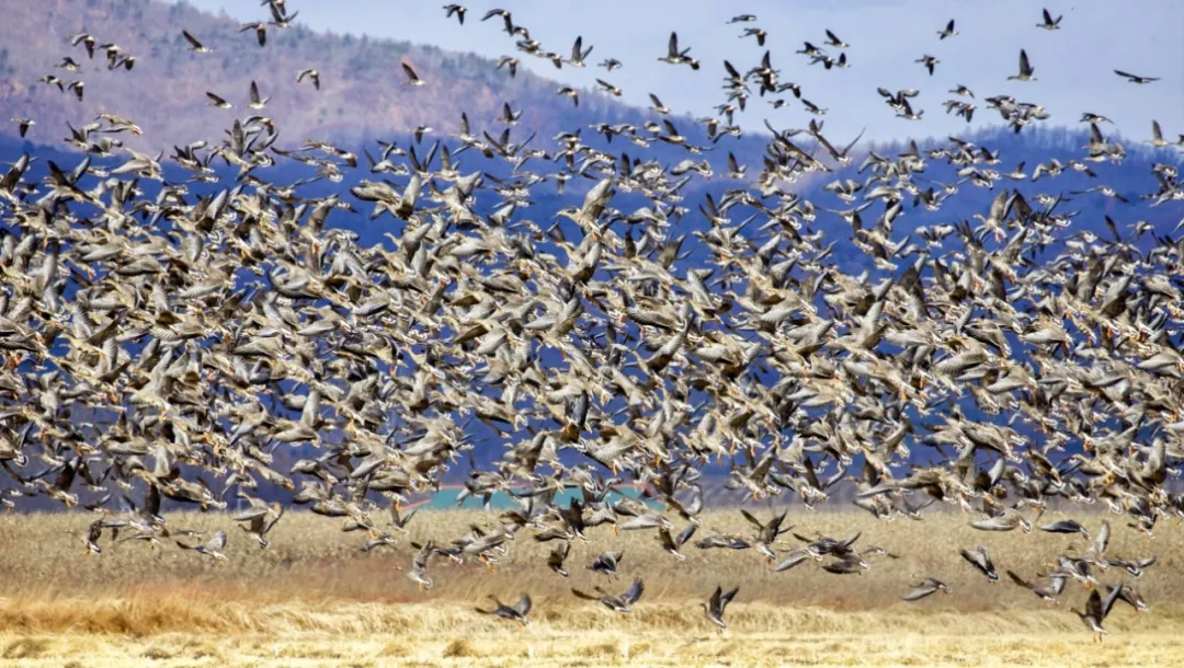 11월 10일 오전, 훈춘시촬영가협회 촬영사 리화춘은 경신진 금당촌 부근의 논밭에서 경이로운 순간을 포착했다. 그의 렌즈를 통해 펼쳐진 장면은 마치 자연의 기적을 보는 것 같았다. 수천마리의 쇠기러기들이 하늘을 가득 메우며 날아오르고 내려앉고 있었는데 그야말로 장관이였다. 이 장면은 인간과 자연이 함께 숨 쉬며 공존하는 아름다운 생태화폭을 생동감 있게 보여주었다.