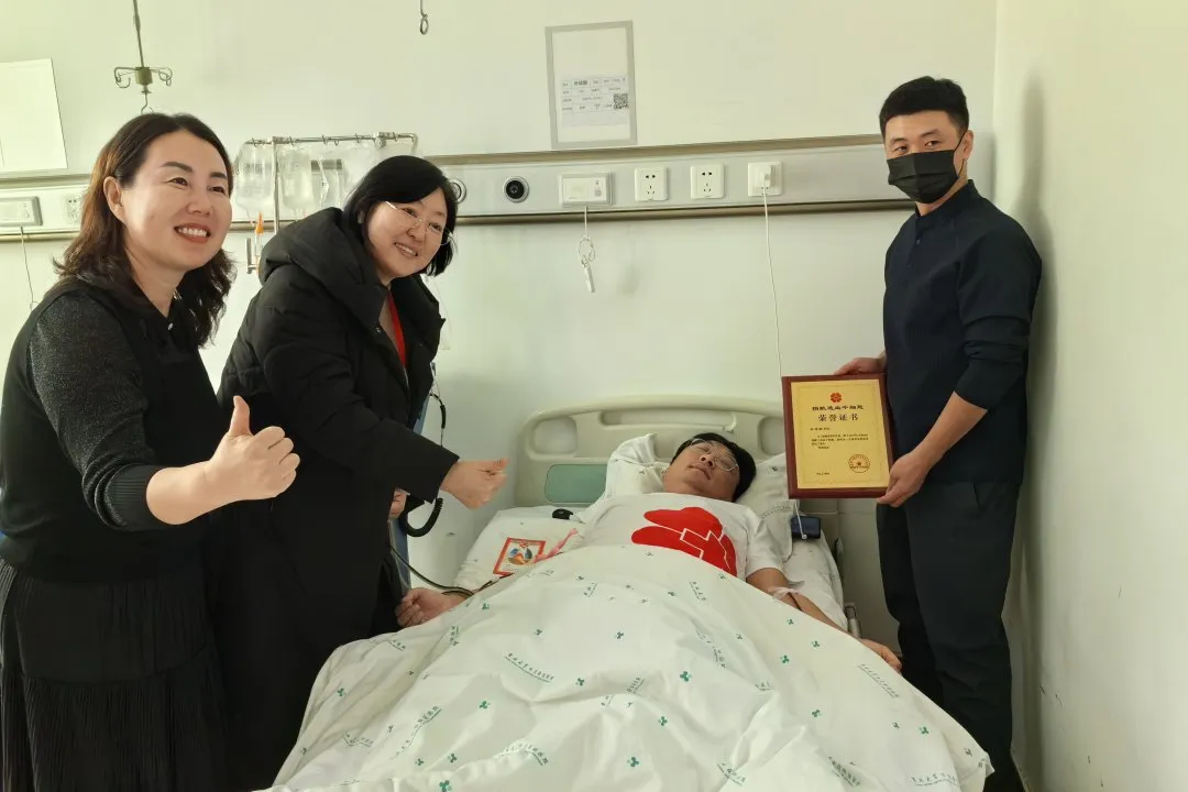기증 당일, 연변조선족자치주적십자회 당조 서기이며 상무부회장인 박일선과 길림성적십자회 기증봉사중심 부주임 류염려가 함께 박성국을 위문하고 영예증서를 수여했습니다.