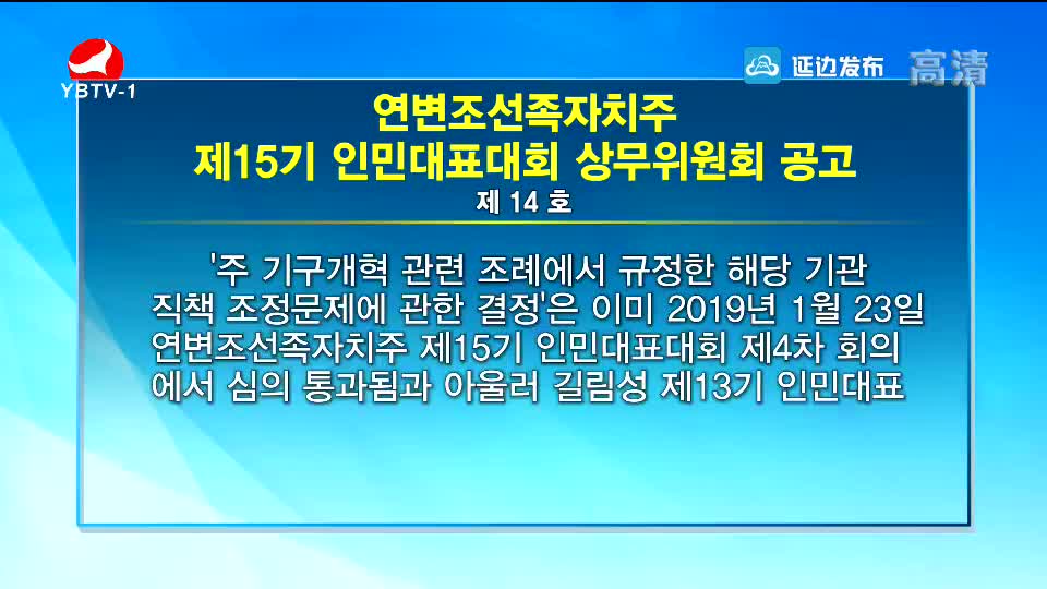 연변조선족자치주 제15기 인민대표대회 상무위원회 공고