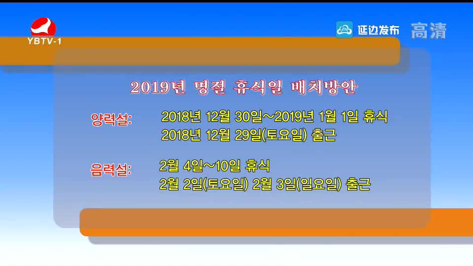 주인민정부 판공실 2019년 명절 휴식일 배치방안 내와
