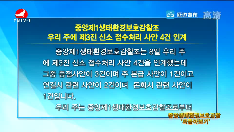 중앙제1생태환경보호감찰조 우리 주에 제3진 신소 접수처리 사안 4건 인계