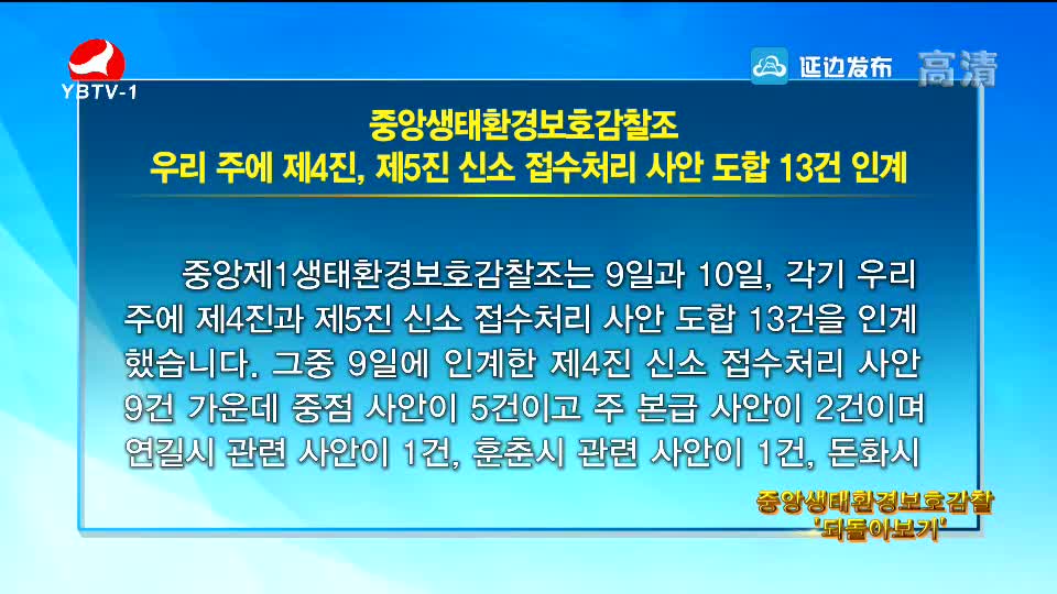 중앙생태환경보호감찰조 우리 주에 제4진,제5진 신소 접수처리 사안 도합 13건 인계