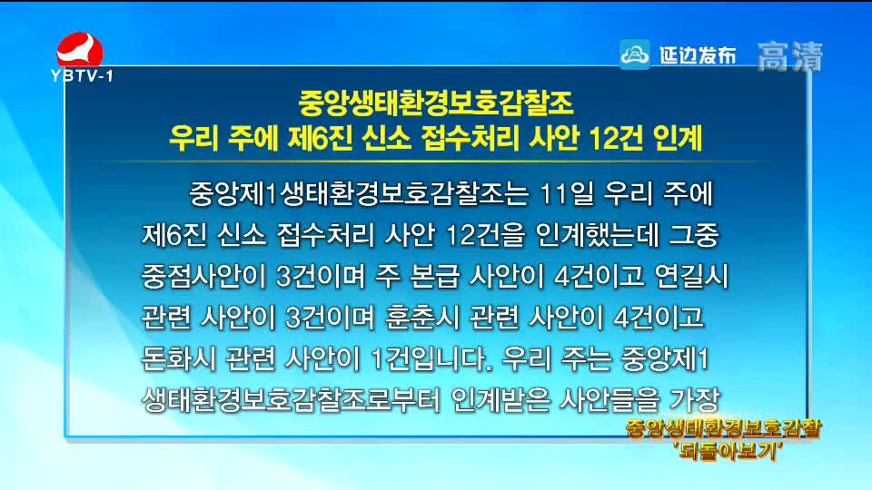 중앙생태환경보호감찰조 우리 주에 제6진 신소 접수처리 사안 12건 인계