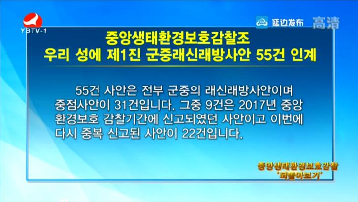 중앙생태환경보호감찰조, 우리 성에 제1진 군중래신래방사안 55건 인계